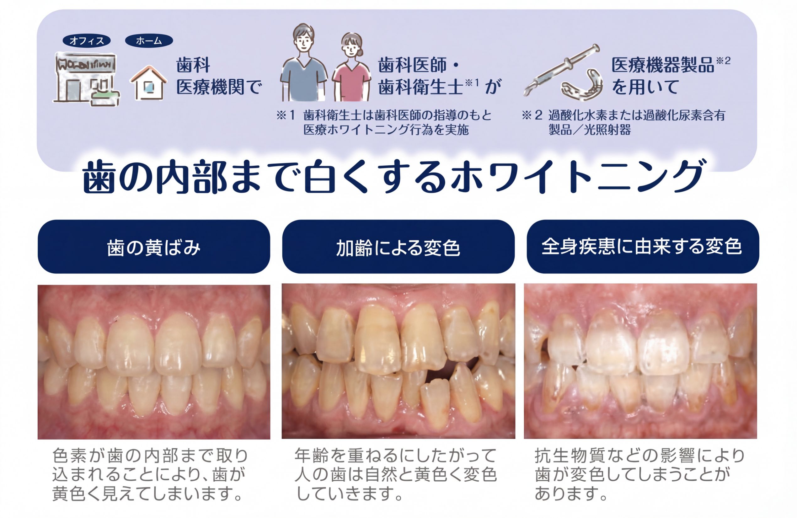 歯科医療機関で、歯科医師による診断のもと行うホワイトニングです。